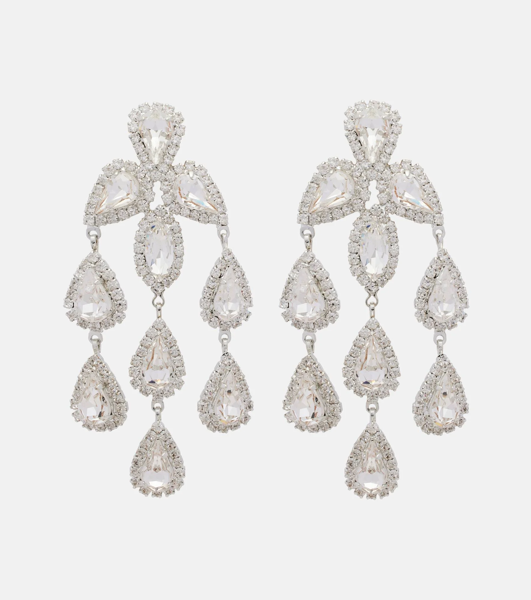 These drop earrings from Magda Butrym are a romantic statement, showcasing elegant drop-shaped accents. Detailed with shimmering crystals, the pieces bring an elegant touch to special-occasion looks. Product Details - Material: brass - Made in Poland - Includes: box, dust bag - Color: silver - Closure: butterfly-back fastening - Item number: P01144122 Size & Fit - Length 9,5cm-3.5" - Max. width 4,5cm-2"