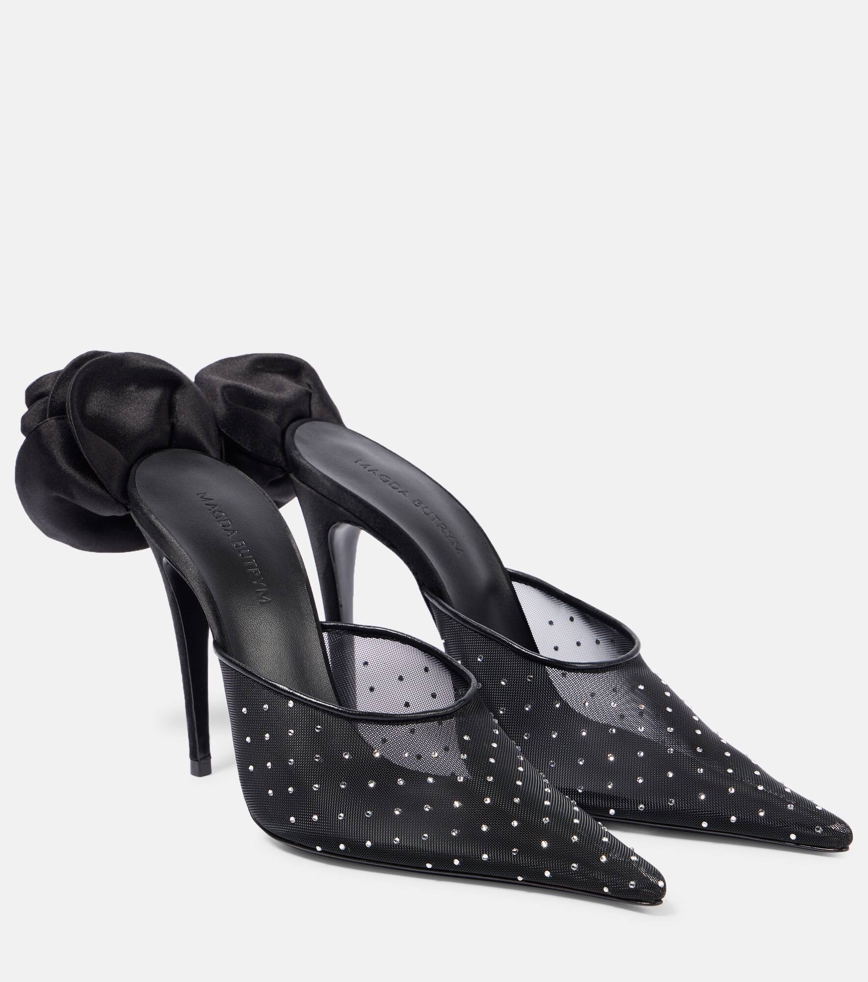 Crystal-embellished mesh pumps