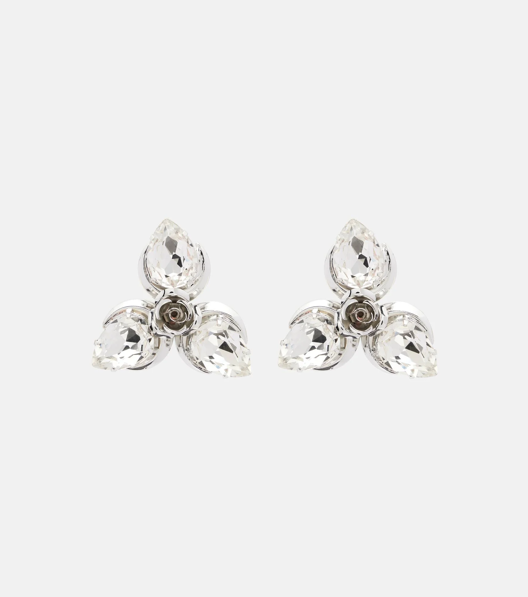 Crystal flower stud earrings in silver