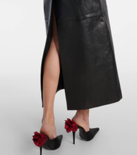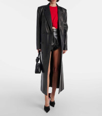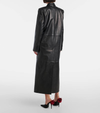 Long leather tailored coat in black