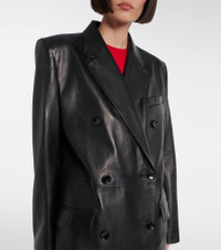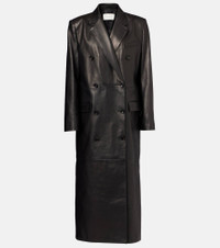 Shaking up the industry with its biting modernity and artisanal excellence, Magda Butrym exists to empower. This coat is crafted from light-catching coated leather, has a double-breasted silhouette with notched lapels, and falls just above the ankles. Product Details - Material: 100% lamb leather - Care instructions: specialist clean - Made in Poland - Designer color name: Black - Item color: black - Lining: 100% viscose - Closure: double-breasted (six buttons) - Pockets: flap chest pockets - Item number: P01051050 Size & Fit - True to size - Shoulder pad inserts - Designed for a loose fit - Non-stretchy fabric - The model seen in the picture is 178cm-5'10" and wearing a size FR 36