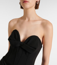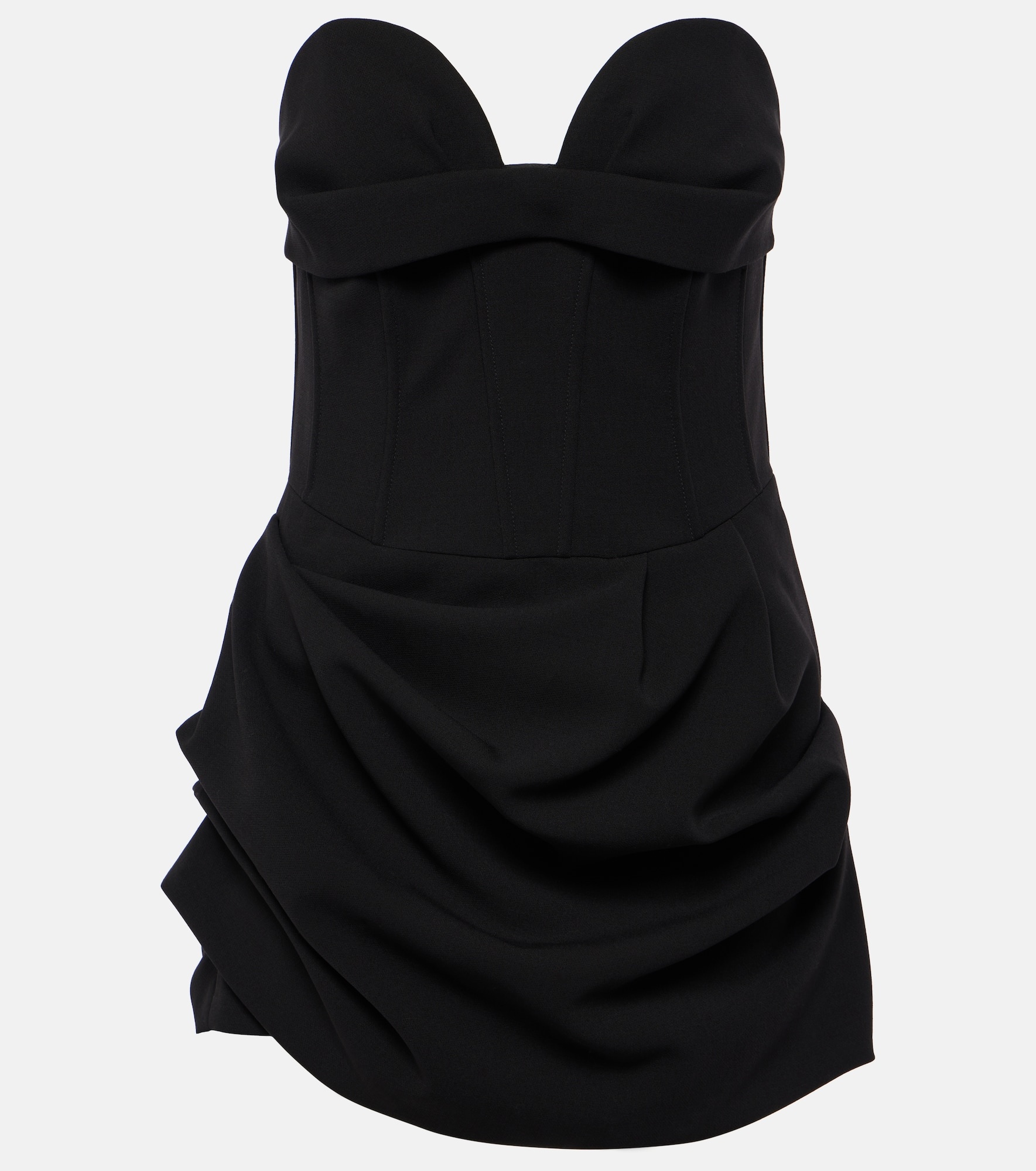 Product Details - Material: 96% wool, 4% elastane - Care instructions: dry clean - Made in Poland - Lining: 100% silk - Closure: zipped back, invisible zipper, button fastening - Item number: P00959675 Size & Fit - True to size - Strapless - Internal boned corset for support - Cinched waist - Non-stretchy fabric - The model seen in the picture is 178cm-5'10" and wearing a size FR 36