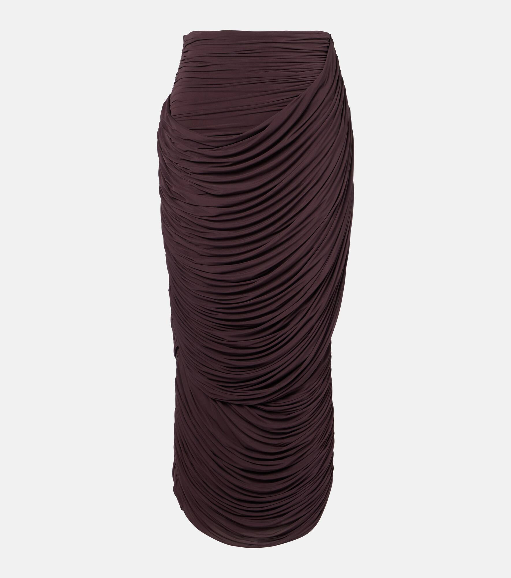 Magda Butrym aims to empower with sharp modern style, expertly delivered through artisanal excellence. This maxi skirt is designed with a high-rise silhouette and sculpts the figure with its refined all-over draping. Product Details - Material: 92% cupro, 8% elastane - Care instructions: dry clean - Made in Poland - Designer color name: Bordeaux - Item color: burgundy - Item number: P01086773 Size & Fit - True to size - Elasticated waist - Stretchy fabric - The model seen in the picture is 178cm-5'10" and wearing a size FR 36
