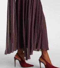 Shaking up the industry with its biting modernity and artisanal excellence, Magda Butrym exists to empower. This sheer midi dress is expertly shaped with a dropped waist, intricate draping, detachable padding at the hips, and an elegant scarf-detail. Product Details - Material: 92% cupro, 8% elastane - Care instructions: dry clean - Made in Poland - Designer color name: Bordeaux - Item color: brown - Item number: P01083651 Size & Fit - True to size - Fitted bodice, loose skirt - Stretchy fabric - High-cut leg - Height of model is 175cm-69" and wears a size FR 36