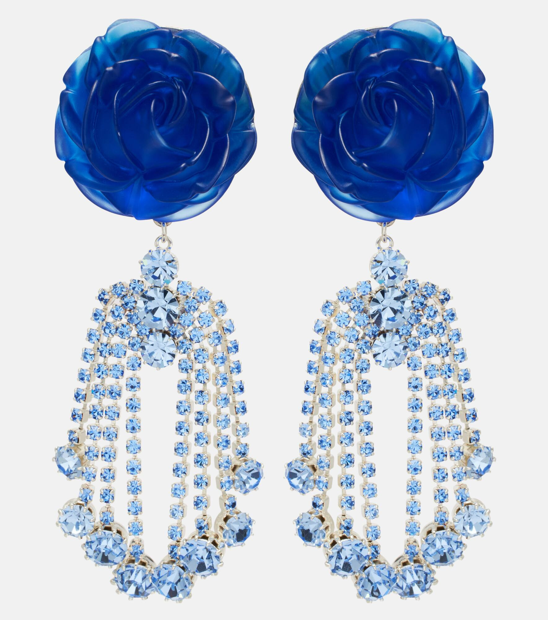 Shaking up the industry with its biting modernity and artisanal excellence, Magda Butrym exists to empower. Crafted from brass, these drop earrings have blue rose and crystal embellishments with butterfly-back fastening. Product Details - Material: brass, crystals - Made in Poland - Item color: blue - Closure: butterfly-back fastening - Item number: P01074902 Size & Fit - Length 10cm-4" - Max. width 3,2cm-1.5"