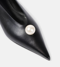 Pointed pearl ballet flats in black satin