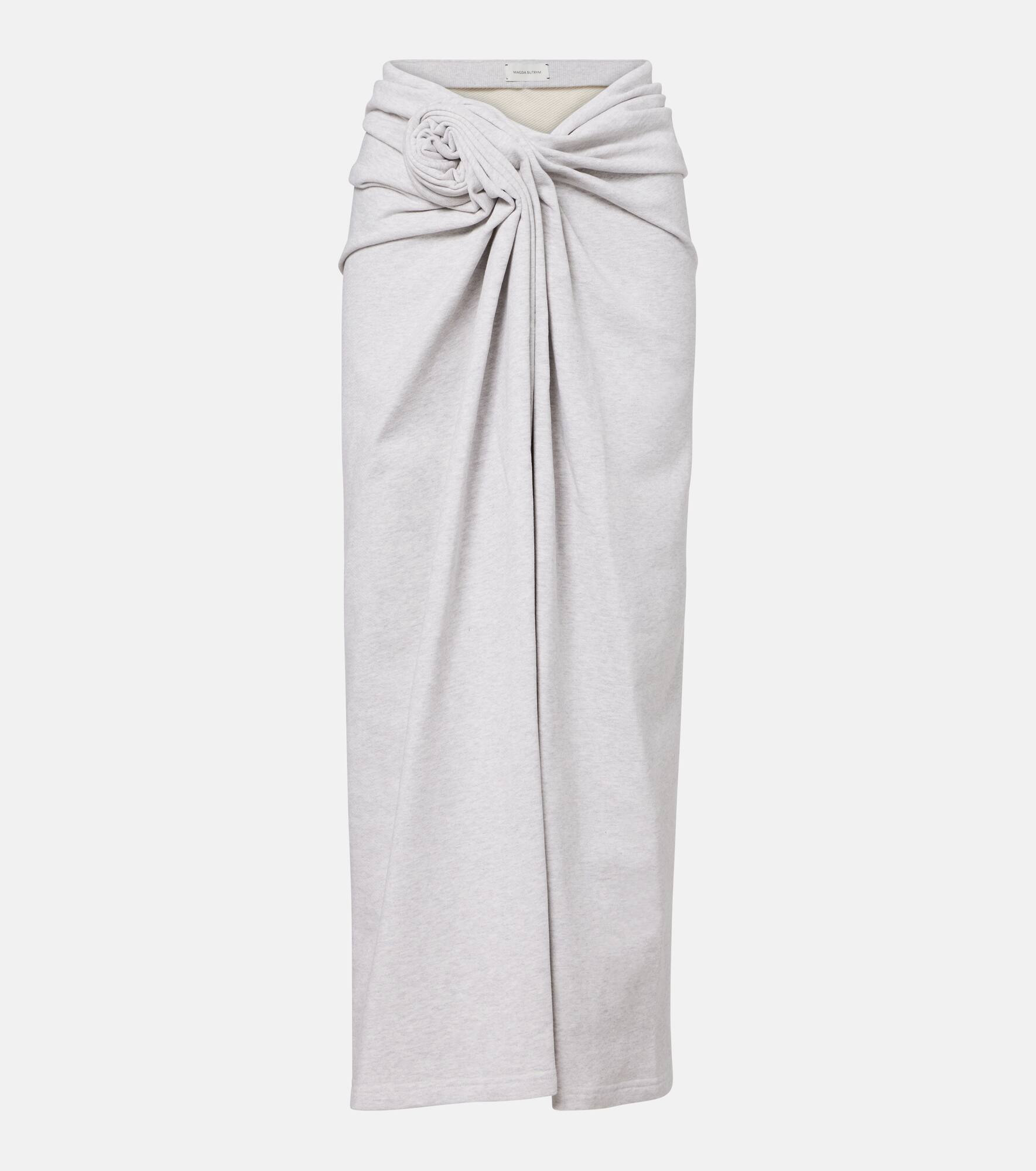 Magda Butrym aims to empower with sharp modern style, expertly delivered through artisanal excellence. Made with cotton, this midi skirt has a floral applique on the waist that gathers the fabric. Product Details - Material: 50% cotton, 50% cotton (recycled) - Care instructions: dry clean - Made in Poland - Designer color name: Grey - Item color: gray - Lining: 97% cotton, 3% elastane - Elasticated waistband - Item number: P01083372 Size & Fit - True to size - Elasticated waist - Non-stretchy fabric - The model seen in the picture is 178cm-5'10" and wearing a size FR 36