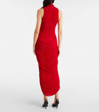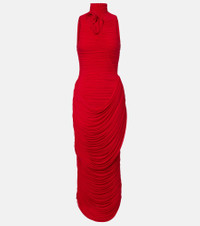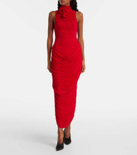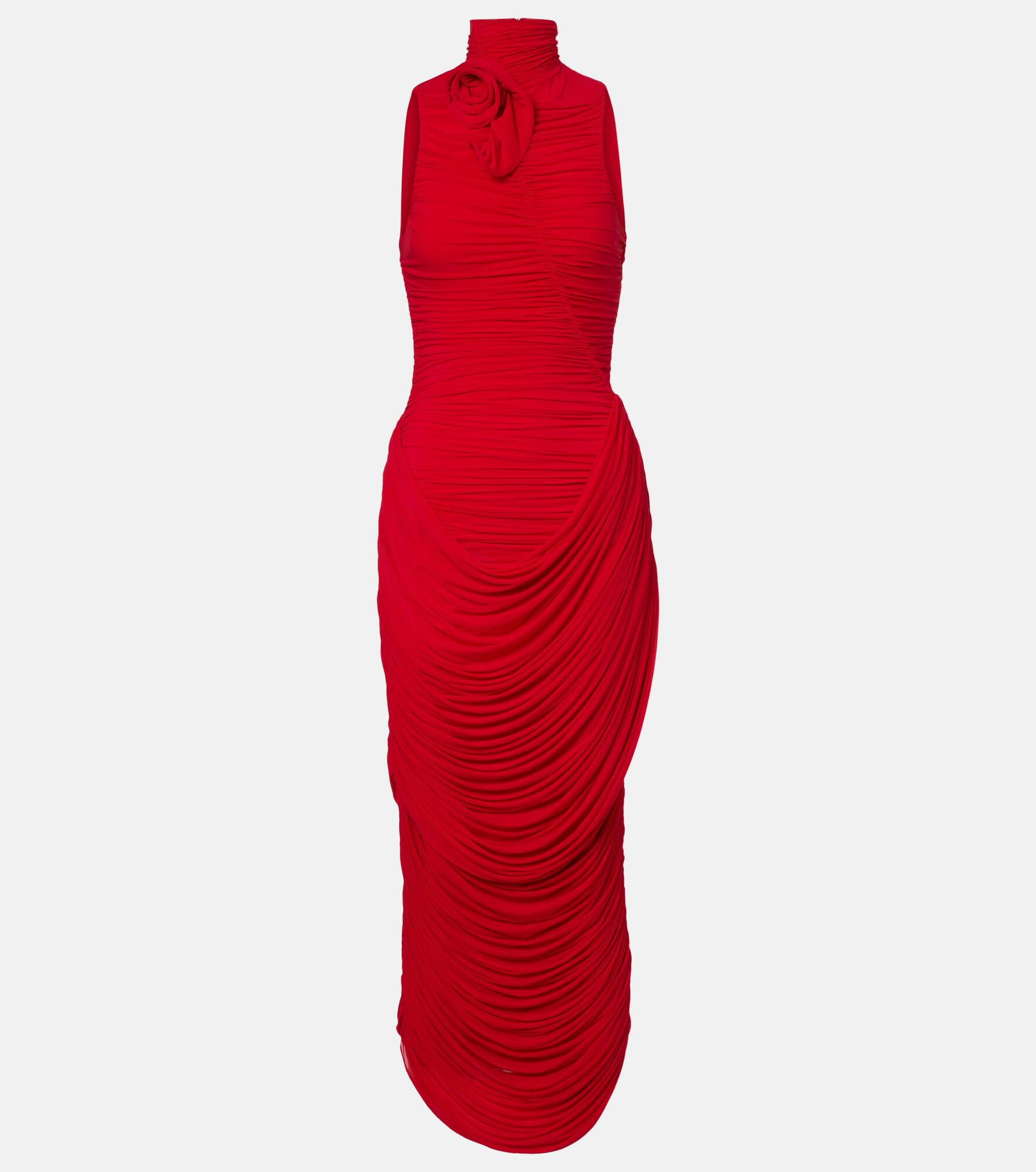 Floral appliques have become something of a Magda Butrym signature, appearing artfully on the brand's most coveted designs. This gown is tailored to a draped silhouette, and the ruched bodice is finished with a charming rose detail. Product Details - Material: 92% cupro, 8% elastane - Care instructions: dry clean - Made in Poland - Designer color name: Red - Item color: red - Closure: invisible zipper - Item number: P01086741 Size & Fit - True to size - Fitted - Stretchy fabric - Medium-cut leg - The model seen in the picture is 178cm-5'10" and wearing a size FR 36