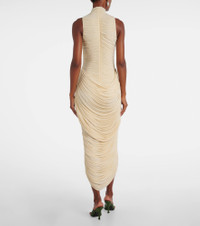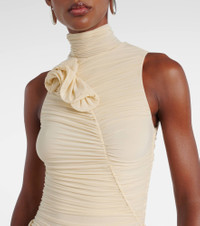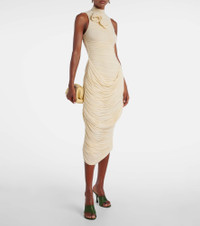 This Magda Butrym gown is beautifully ruched all over, creating a flattering draped silhouette. This sleeveless design features a high neck and delicate floral applique for an elegant finishing touch. Product Details - Material: 92% cupro, 8% elastane - Care instructions: dry clean - Made in Poland - Designer color name: Beige - Item color: beige - Closure: invisible zipper - Item number: P01086740 Size & Fit - True to size - Fitted - Stretchy fabric - Medium-cut leg - The model seen in the picture is 178cm-5'10" and wearing a size FR 36