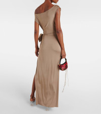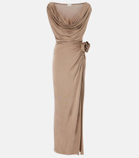 Appliquéd draped satin-jersey maxi dress