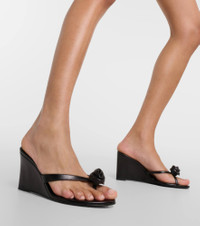 Floral-appliqué leather wedge mules
