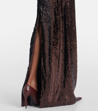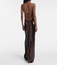 Appliquéd sequined tulle halterneck gown Brown
