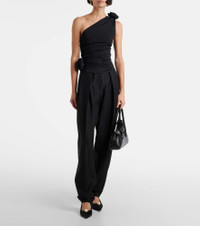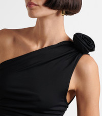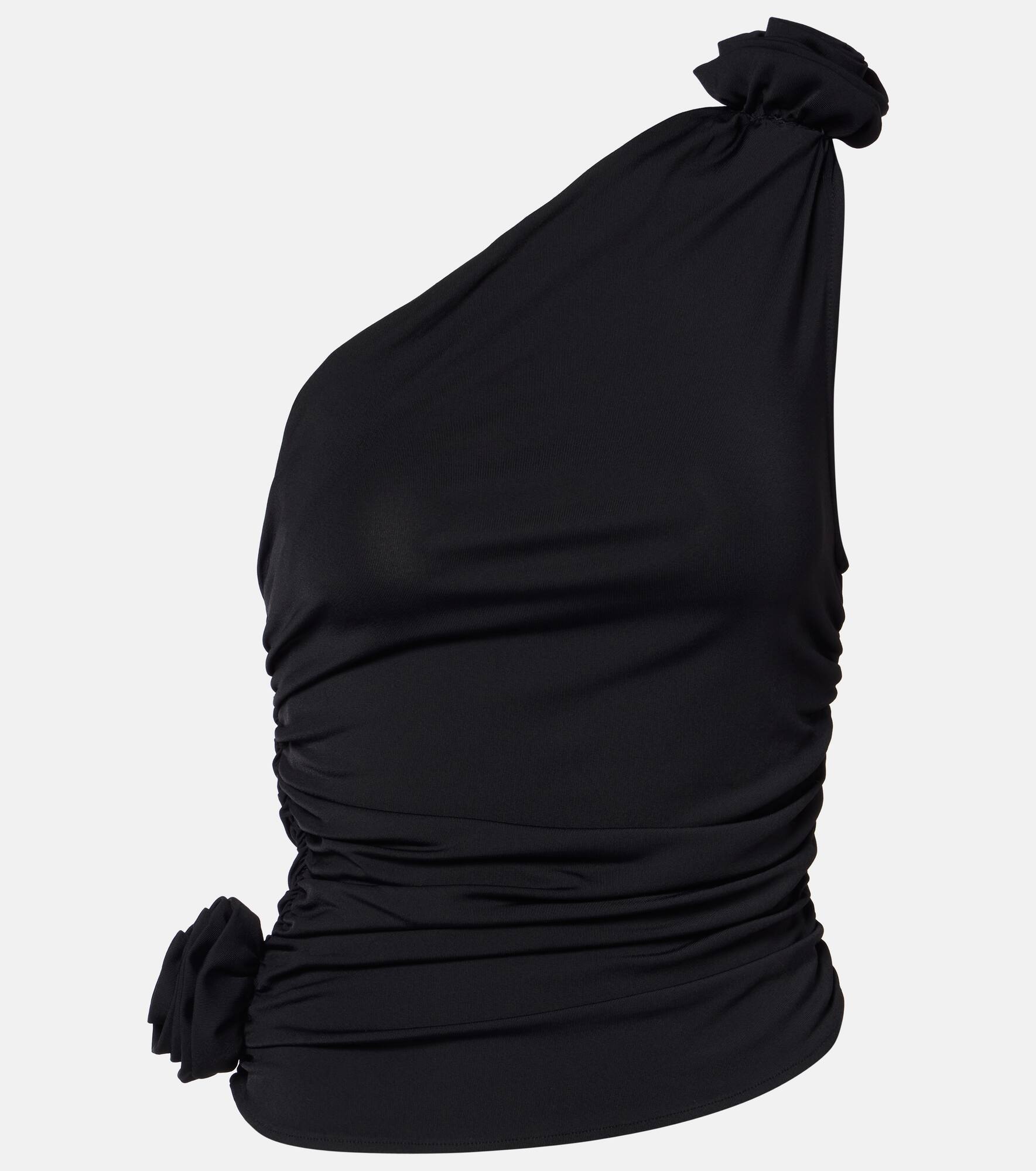 Floral-appliqué one-shoulder jersey top
