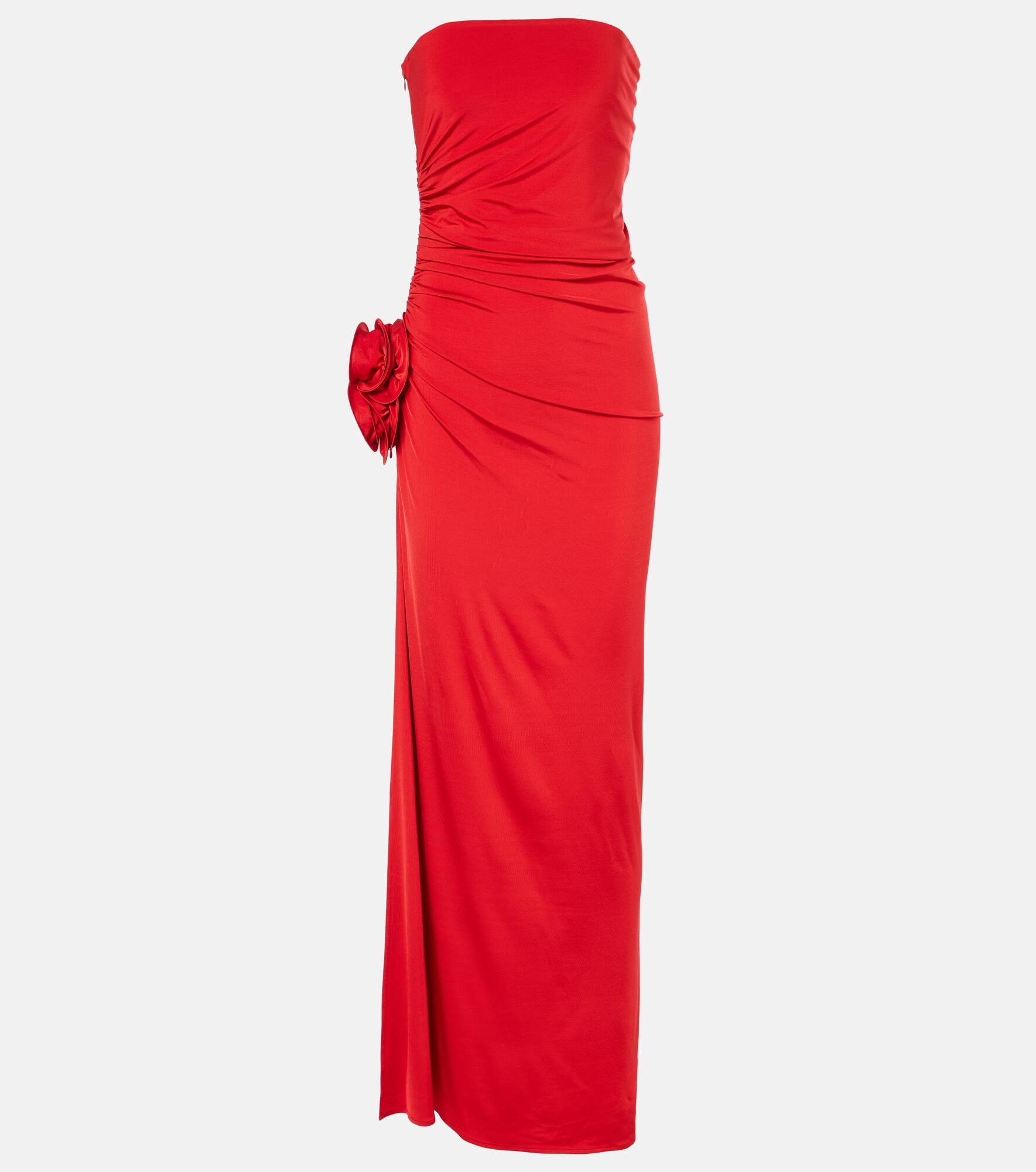 Product Details - Material: 95% viscose, 5% elastane - Care instructions: dry clean - Made in Poland - Designer color name: Red - Closure: zip and button fastening - Item number: P00993313 Size & Fit - True to size - Strapless - Cinched waist - Stretchy fabric - The model seen in the picture is 178cm-5'10" and wearing a size FR 36