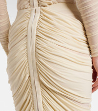 Shaking up the industry with its biting modernity and artisanal excellence, Magda Butrym exists to empower. This ruched midi skirt is designed to fit and flatter the figure and is topped with a brand-signature rose-applique. Product Details - Material: 92% cupro, 8% elastane - Care instructions: dry clean - Made in Poland - Designer color name: Cream - Item color: white - Closure: concealed closure, hook fastening - Item number: P01066047 Size & Fit - True to size - Semi-sheer - Fitted - Stretchy fabric - The model seen in the picture is 178cm-5'10" and wearing a size FR 36