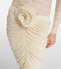 Floral-appliqué ruched midi skirt