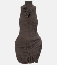 This elegant minidress from Magda Butrym demonstrates the brand's skillful use of draping and ruching in its design. The piece arrives decorated with a signature floral-applique detail at the neck. Product Details - Material: 92% cupro, 8% elastane - Care instructions: dry clean - Made in Poland - Color: brown - Designer color name: Brown - Closure: concealed zipped back, snap-buttoned fastenings - Item number: P01130886 Size & Fit - True to size - Petite sizing - Fitted - Stretchy fabric - Medium-cut leg - The model seen in the picture is 178cm-5'10" and wearing a size FR 36