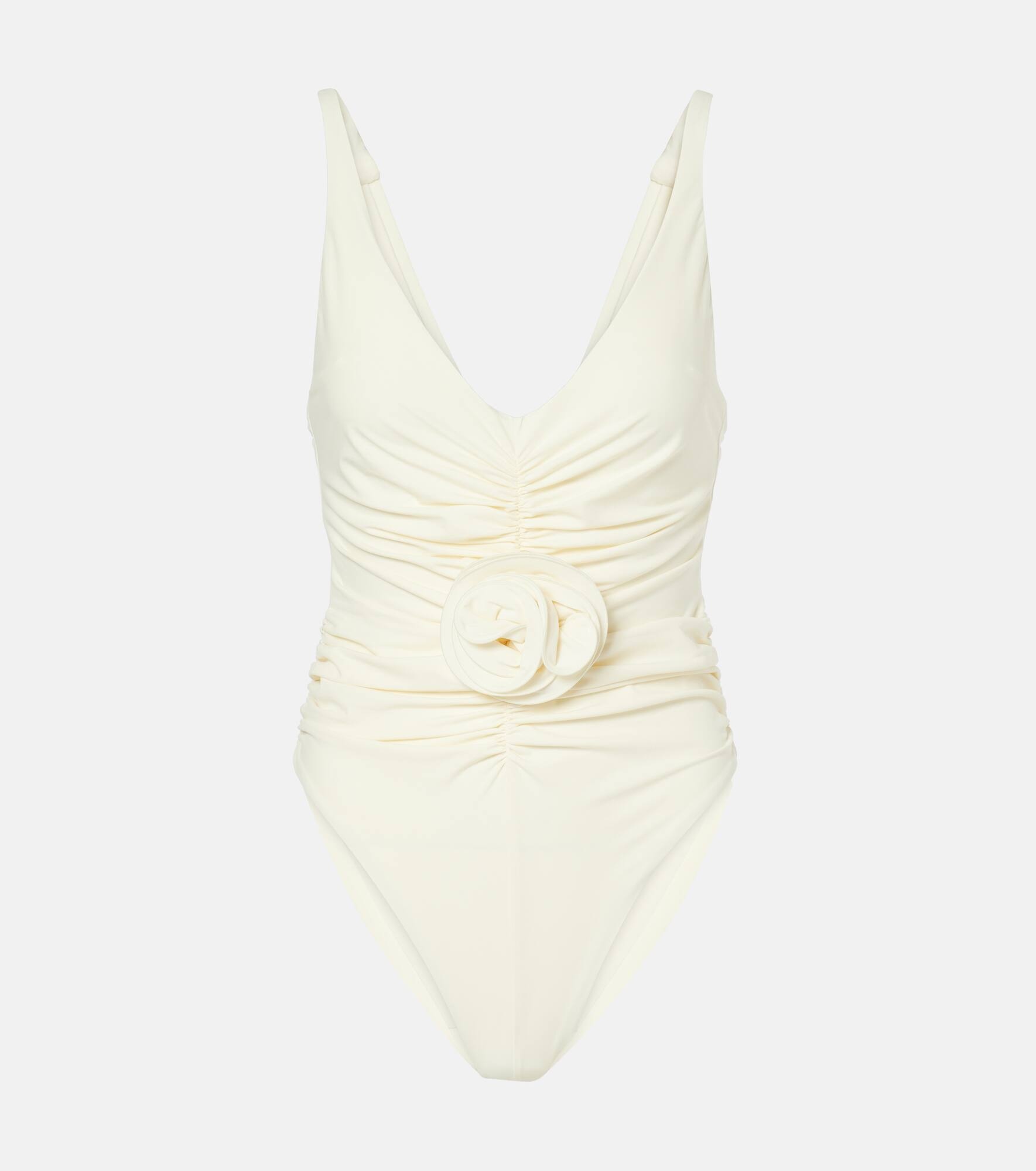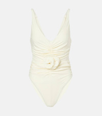 Ruched flower swimsuit in cream