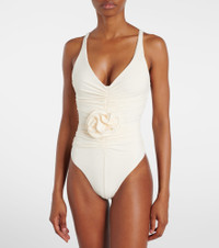 Floral-appliqué ruched swimsuit