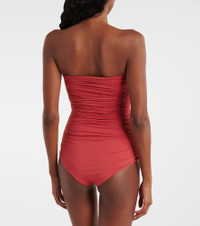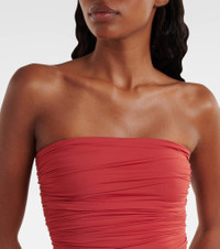 Floral appliques have become something of a Magda Butrym signature, appearing artfully on the brand's most coveted designs. This swimsuit is a flattering addition to your beachwear collection with its strapless design and ruched fabric. Product Details - Material: 82% polyamide, 18% elastane - Care instructions: machine wash at 30 degrees - Made in Italy - Designer color name: Red - Item color: red - Includes: dust bag - Item number: P01083640 Size & Fit - True to size - Strapless - Unpadded Top - Low-cut leg - The model seen in the picture is 178cm-5'10", cup size B, and wearing a size FR 36