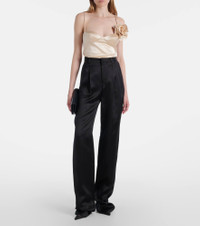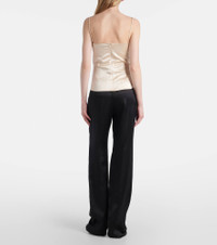Shaking up the industry with its biting modernity and artisanal excellence, Magda Butrym exists to empower. Finished with a delicate floral-applique at the shoulder, this camisole-style top is expertly crafted from silk-blend satin with padded cups. Product Details - Material: 96% silk, 4% elastane - Care instructions: dry clean - Made in Poland - Designer color name: Beige - Item color: beige - Lining: 90% silk, 10% elastane - Closure: zipped back - Padded cups - Item number: P01083277 Size & Fit - Fits large to size - we recommend trying one size smaller - Cinched waist - Non-stretchy fabric - Falls to the hip - Padded top - The model seen in the picture is 178cm-5'10" and wearing a size FR 34