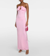 Product Details - Material: 87% polyamide, 13% elastane - Care instructions: dry clean - Made in Poland - Designer color name: Pink - Closure: zipped back - Item number: P00890931 Size & Fit - True to size - Strapless - Fitted - Stretchy fabric - slit length 75,0cm-29.5" - The model seen in the picture is 178cm-5'10" and wearing a size FR 36