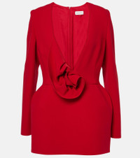 Floral-appliqué wool-blend crêpe minidress