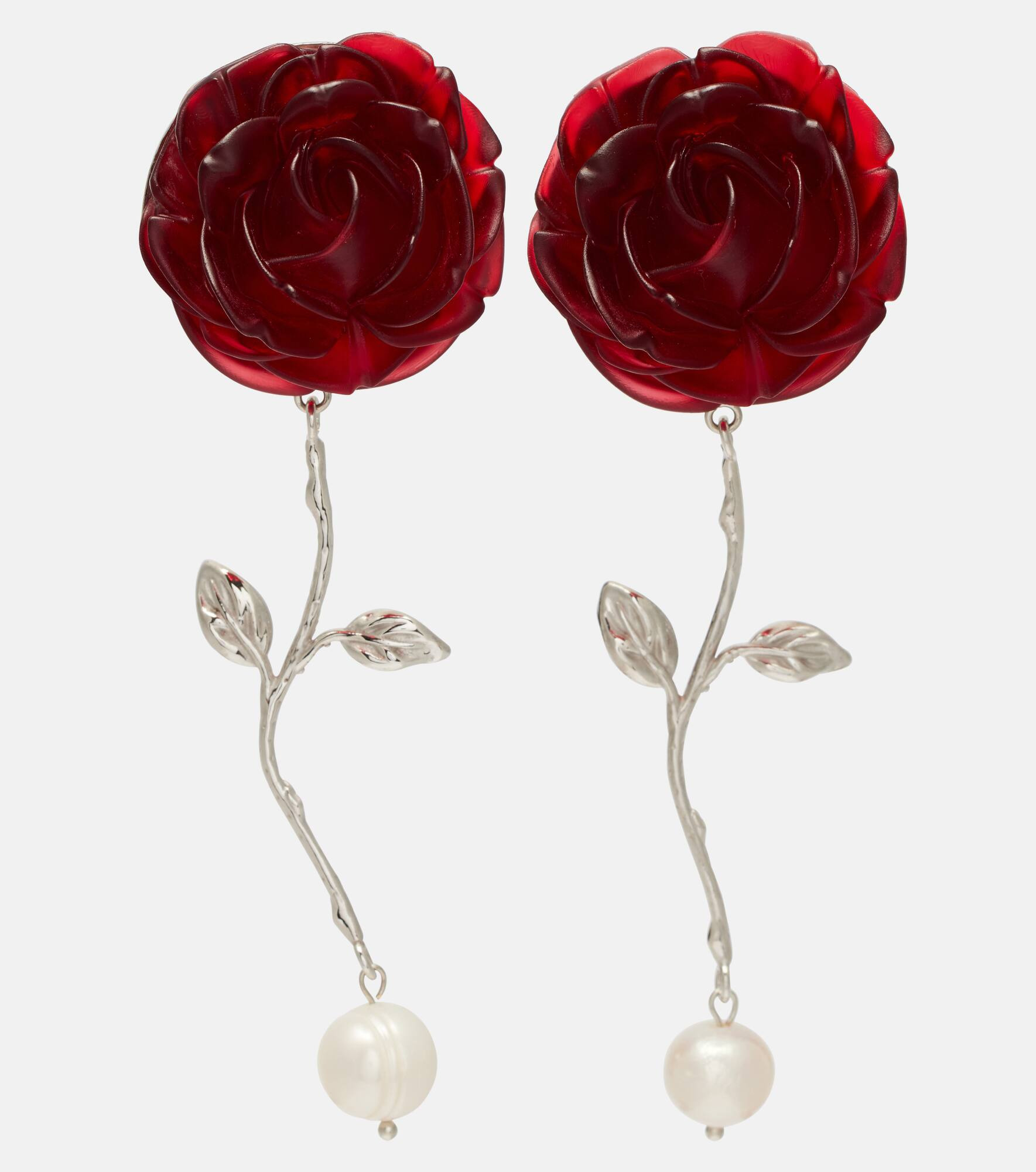 Shaking up the industry with its biting modernity and artisanal excellence, Magda Butrym exists to empower. Featuring the brand's classic rose motif, these earrings are made from brass and are finished with freshwater pearls. Product Details - Material: brass, pearls, resin - Made in Poland - Item color: red, silver - Closure: butterfly-back fastening - Item number: P01074903 Size & Fit - Length 10.5cm-4" - Max. width 3cm-1"
