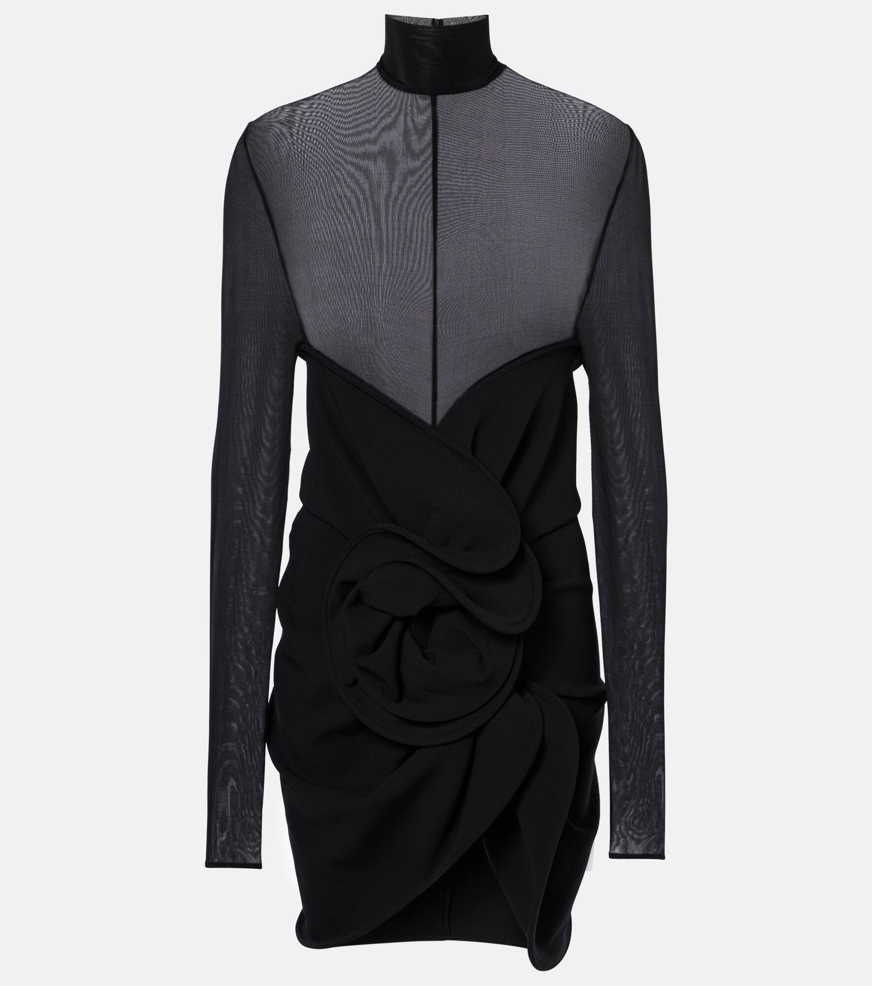 Gathered sheer wool-blend minidress