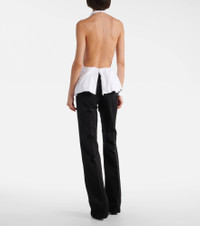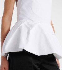 Classic cotton poplin fabric gets a romantic twist on this top from Magda Butrym. Featuring a flared peplum hem and halterneck silhouette, the piece seamlessly transitions from day-to-night. Product Details - Material: 100% cotton - Care instructions: do not wash - Made in Poland - Designer color name: White - Item color: white - Lining: 100% silk - Closure: hook-fastening back - Pockets: side slit pockets - Item number: P01083282 Size & Fit - True to size - Fits large to size - we recommend trying one size smaller - Low back - Cinched waist - Non-stretchy fabric - Falls to the hip - The model seen in the picture is 178cm-5'10" and wearing a size FR 36