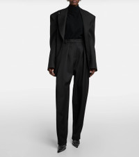 Product Details - Material: 100% wool - Care instructions: dry clean - Made in Poland - Designer color name: Black - Closure: zipper fly, button and hook fastenings - Pockets: side slit pockets - Belt loops - Item number: P00890887 Size & Fit - True to size - Non-stretchy fabric - Straight leg - High-waisted - The model seen in the picture is 178cm-5'10" and wearing a size FR 36