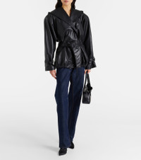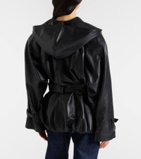 Magda Butrym aims to empower with sharp modern style, expertly delivered through artisanal excellence. This leather jacket features a detachable waist belt and a hood. Product Details - Material: 100% sheep leather - Care instructions: dry clean - Made in Poland - Color: black - Designer color name: Black - Item color: black - Lining: 100% viscose - Closure: double-breasted (four buttons) - Pockets: side slit pockets - Hood - Self-tie belt - Item number: P01130905 Size & Fit - True to size - Loose fit, comes with belt - Non-stretchy fabric - Falls below the hip - The model seen in the picture is 178cm-5'10" and wearing a size FR 36