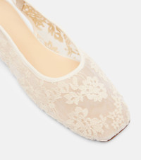 These Magda Butrym slingback flats embody the label's signature balance of timeless design and modern vision. Crafted from lace with floral embroidery, the pair is finished with self-ties at the ankles. Product Details - Upper: fabric - Lining: fabric, leather - Sole: leather insole and sole - Toe shape: square toe - Made in Italy - Includes: shoe box, dust bag - Designer color name: White - Item color: white - Item number: P01096642 Size & Fit - True to size - European sizes
