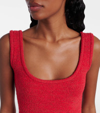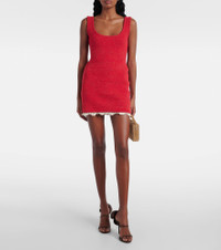 Cotton crochet-trimmed ribbed-knit mini dress Red