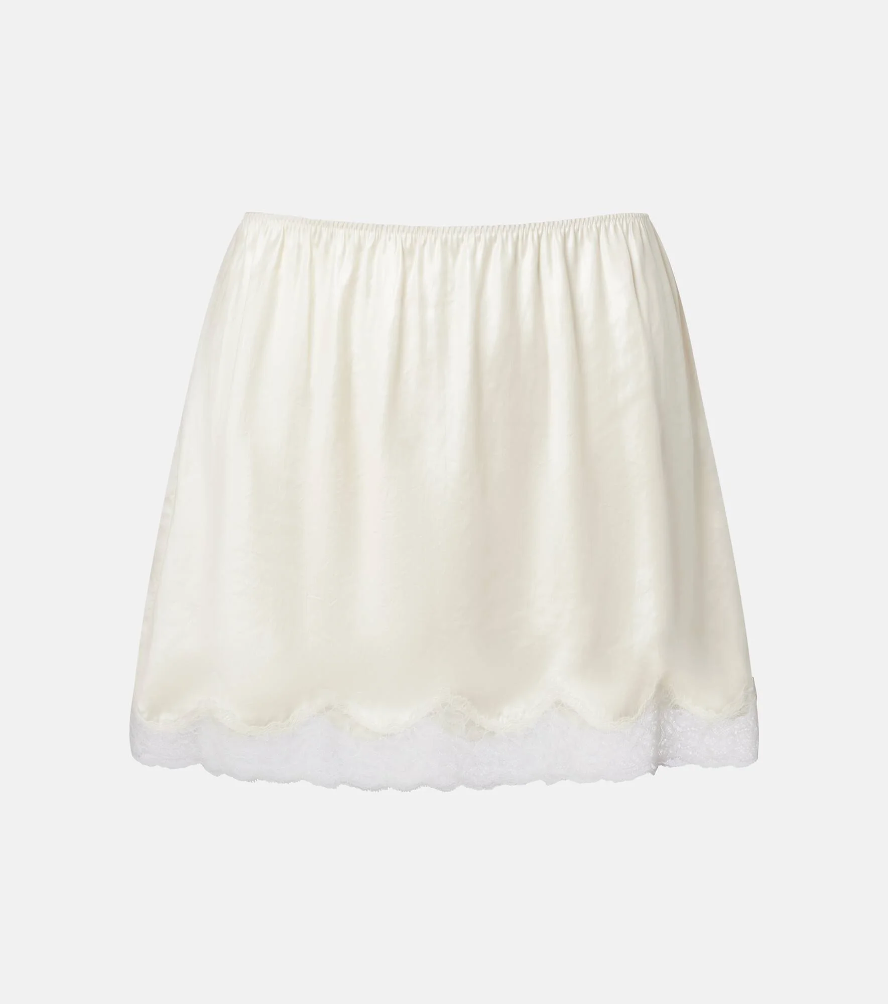 Mini slip skirt with lace-trimmed hem in cream