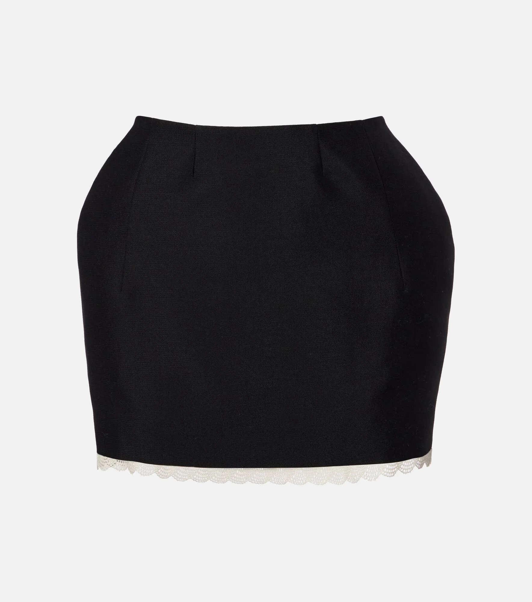 Magda Butrym aims to empower with sharp modern style, expertly delivered through artisanal excellence. Made in Poland from wool and mohair, this miniskirt features full silk lining, internal padding for an exaggerated silhouette, and a lace-trimmed hemline. Product Details - Material: 59% wool, 41% mohair - Care instructions: dry clean - Made in Poland - Color: black - Designer color name: Black - Lining: 100% silk - Item number: P01130912 Size & Fit - True to size - Non-stretchy fabric - High-waisted - The model seen in the picture is 178cm-5'10" and wearing a size FR 36