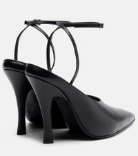 These leather pumps by Magda Butrym offer a refined finish with their pointed-toe silhouette and minimalist design. Set on curbed stiletto heels, the black pair features slender straps that seamlessly wrap around the ankles. Product Details - Upper: calf leather - Lining: leather - Sole: leather insole and sole - Color: black - Toe shape: pointed toe - Made in Italy - Includes: shoe box, dust bag - Designer color name: Black - Hardware color: silver - Closure: buckle-fastening ankle strap - Item number: P01141023 Size & Fit - True to size - Slightly narrow at the toe - European sizes - 11cm-4.5" heel