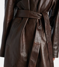 Shaking up the industry with its biting modernity and artisanal excellence, Magda Butrym exists to empower. This leather wrap coat features a self-tie belt that cinches the waist. Product Details - Material: 100% sheep leather - Care instructions: specialist clean - Made in Poland - Designer color name: Brown - Item color: brown - Lining: 100% viscose - Closure: concealed buttoned front - Pockets: welt pockets - Detachable belt - Item number: P01083364 Size & Fit - True to size - Loose fit, comes with belt - Non-stretchy fabric - slit length 51,0cm-20" - The model seen in the picture is 178cm-5'10" and wearing a size FR 36