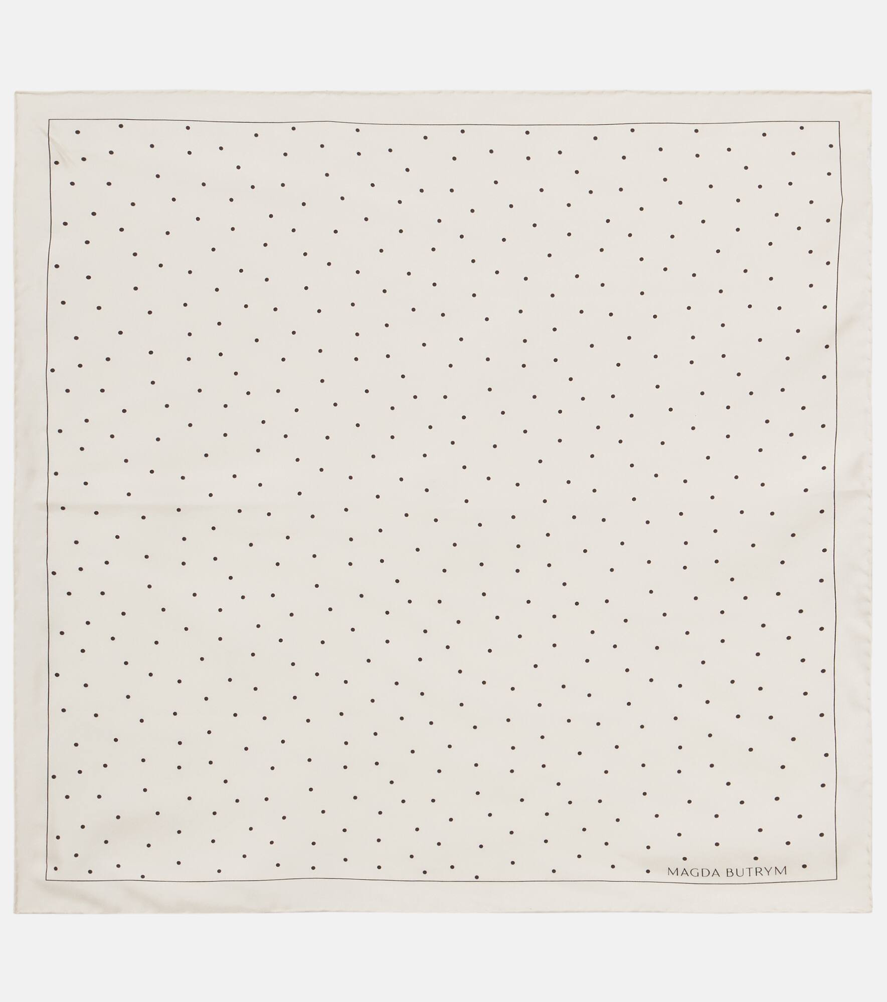 Give your outfits a playful flair with a scarf from Magda Butrym featuring whimsical polka dots. Made in Italy, the piece is crafted from pure silk. Product Details - Material: 100% silk - Care instructions: dry clean - Made in Italy - Designer color name: Cream - Item color: beige, black - Item number: P01057110 Size & Fit - Length 66cm-26" - Width 66cm-26"