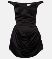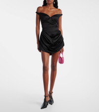 This bustier dress by Magda Butrym will turn heads with its mini silhouette and ruched detailing on the skirt. Its design features an off-shoulder neckline finished with elasticated shoulder straps and a padded front. Product Details - Material: 66% viscose, 34% linen - Care instructions: dry clean - Made in Poland - Designer color name: Black - Item color: black - Closure: concealed zipper, zipped back, hook fastening - Padded cups - Item number: P01083649 Size & Fit - Fits large to size - we recommend trying one size smaller - For larger bust sizes we recommend taking one size up - Close fit at the hips - Cinched waist - Non-stretchy fabric - The model seen in the picture is 178cm-5'10" and wearing a size FR 34