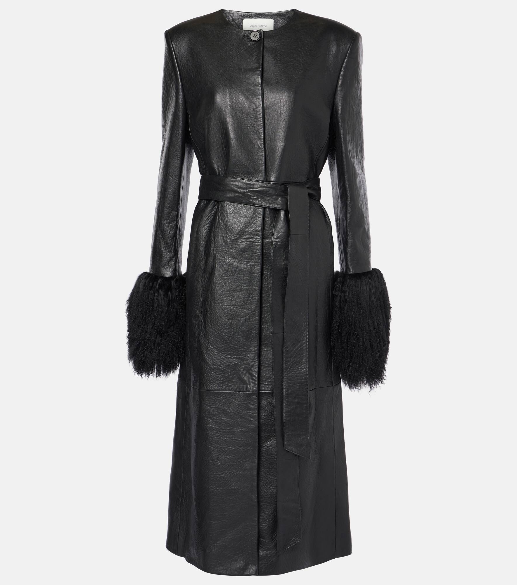 Shearling-trimmed leather coat