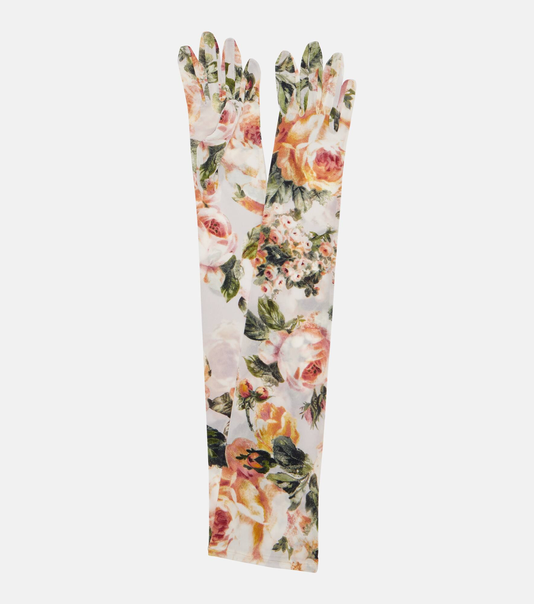 Floral details have become something of a Magda Butrym signature, appearing artfully on the brand's most coveted designs. These gloves feature a vintage rose print which complements their sheer, opera-style silhouette. Product Details - Material: 92% cupro, 8% elastane - Care instructions: dry clean - Made in Poland - Designer color name: Cream - Item color: white, multicolor - Item number: P01093337 Size & Fit - Length 54cm-21.5" - Width of palm 8cm-3"