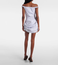 Striped draped cotton poplin bustier dress