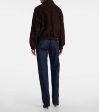 Shaking up the industry with its biting modernity and artisanal excellence, Magda Butrym exists to empower. An essential to every wardrobe, this jacket is made in Poland purely from brown suede. Product Details - Material: 100% lamb leather (suede) - Care instructions: specialist clean - Made in Poland - Designer color name: Brown - Item color: brown - Lining: 100% viscose - Closure: zipper, snap-button fastenings - Pockets: welt pockets - Hem: elasticated - Cuff: elasticated - Item number: P01084036 Size & Fit - True to size - Dropped shoulders - Designed for a loose fit - Elasticated hem - Non-stretchy fabric - Falls to the hip - The model seen in the picture is 178cm-5'10" and wearing a size FR 36