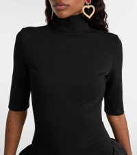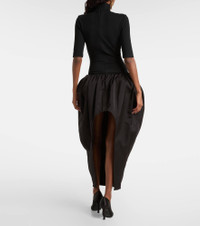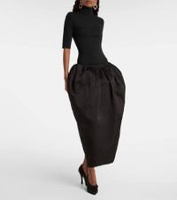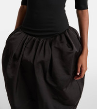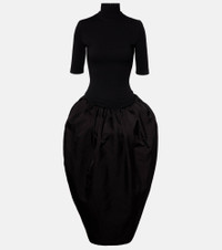 High-neck puff skirt midi dress in black