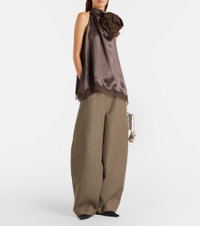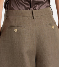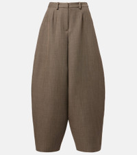 Magda Butrym aims to empower with sharp modern style, expertly delivered through artisanal excellence, as exemplified by these pants. Tailored from pure wool, the style boasts a voluminous barrel-leg silhouette that tapers gracefully toward the ankles. Product Details - Material: 100% wool - Care instructions: dry clean - Made in Poland - Color: beige - Designer color name: Beige - Item color: beige - Closure: zipper fly, button and hook fastenings - Pockets: slant pockets, back pockets - Belt loops - Item number: P01130908 Size & Fit - Fits large to size - we recommend trying one size smaller - Non-stretchy fabric - Wide-leg - High-waisted - The model seen in the picture is 178cm-5'10" and wearing a size FR 34