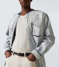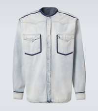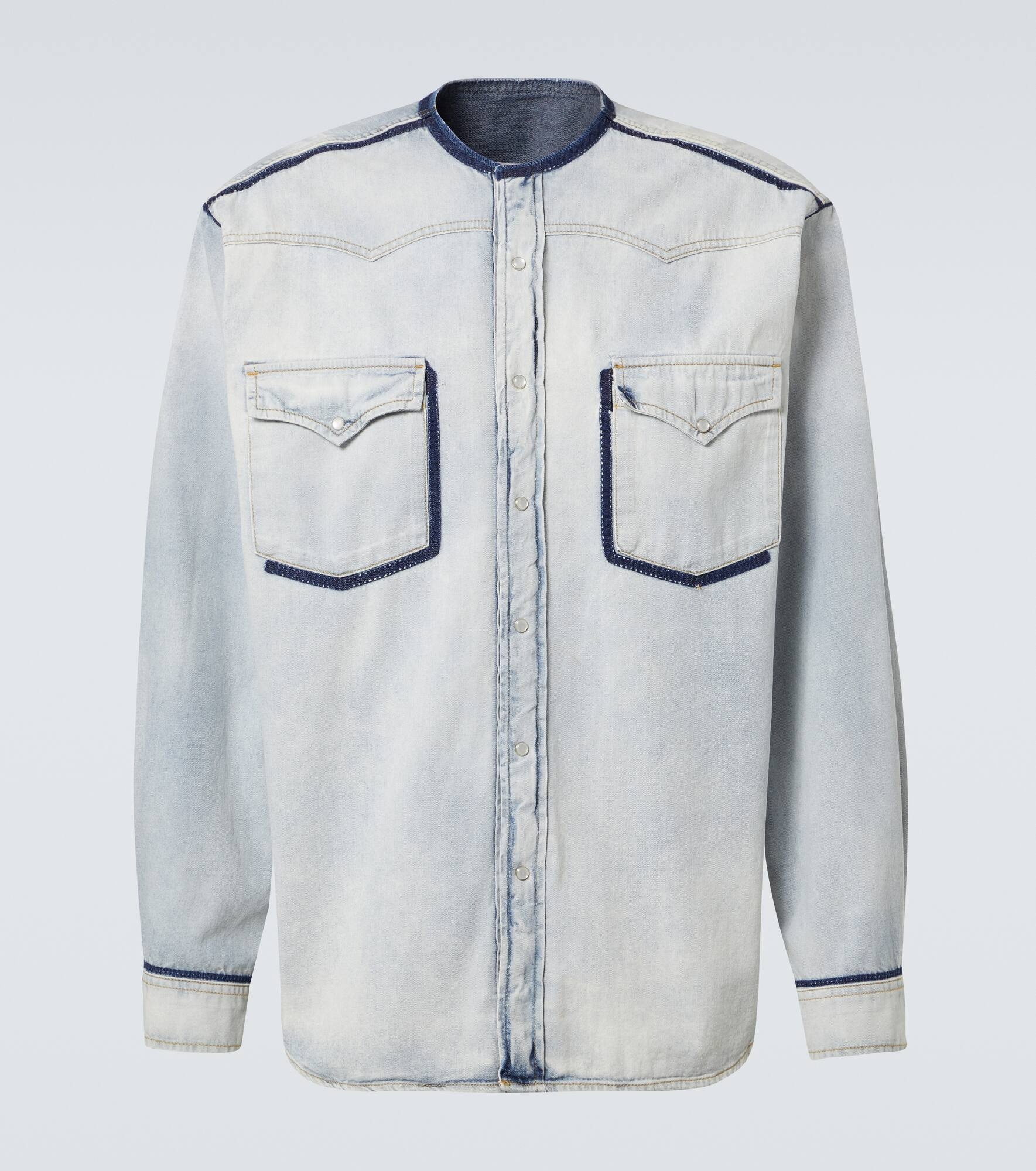 Collarless denim shirt