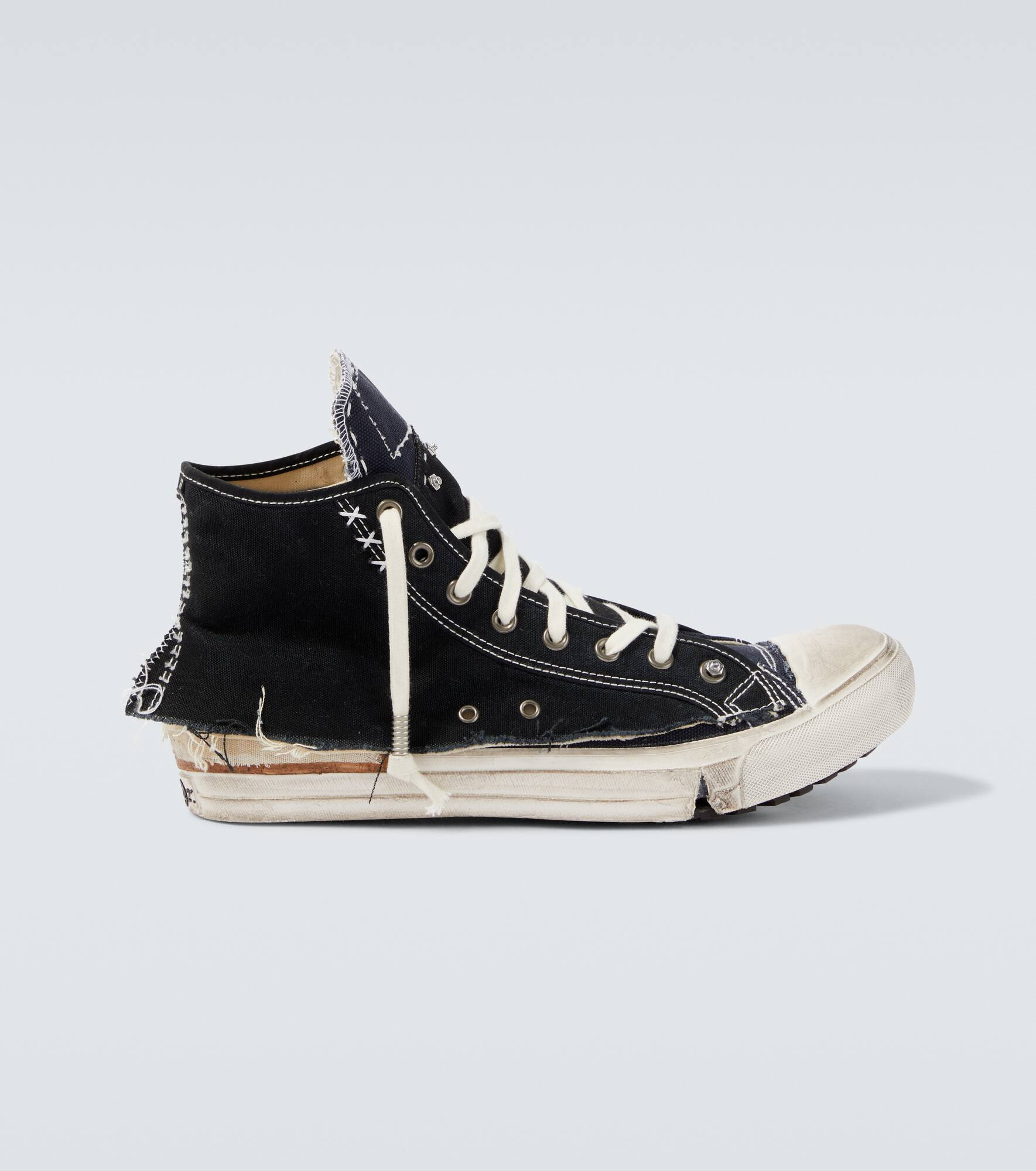 A reinvention of a classic silhouette, these Loved To Death sneakers from Maison Margiela showcase a layered canvas construction. The high-top design is defined by raw edges and distressed detailing throughout. Product Details - Upper: fabric - Lining: fabric - Sole: leather insole, rubber sole - Toe shape: round toe - Made in Vietnam - Includes: dust bag, shoe box - Designer color name: Blue/Black - Item color: black, blue - Closure: lace-up - Item number: P01082556 Size & Fit - True to size - Half sizes please take the next size down - European sizes