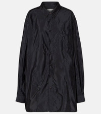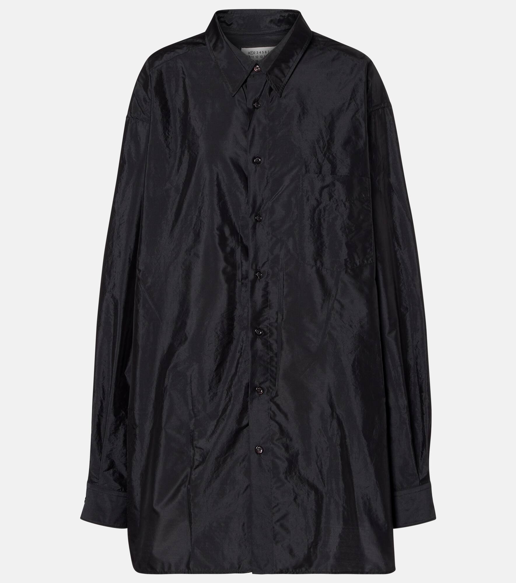 Having shocked audiences with its radical runways and never-before-seen silhouettes in the late ‘80s, Maison Margiela continues to champion bold experimentation. This oversized shirt is Italian-made from lightly creased, lustrous fabric that catches the light. Product Details - Material: 75% polyester, 25% polyamide - Care instructions: dry clean - Made in Italy - Designer color name: Black - Item color: black - Contains non-textile parts of animal origin - Closure: buttoned front - Cuff: buttoned - Collar: classic (Straight point) - Item number: P01069722 Size & Fit - Fits large to size - we recommend trying one size smaller - Dropped shoulders - Oversized - Non-stretchy fabric - Falls below the hip - The model seen in the picture is 178cm-5'10" and wearing a size IT 38