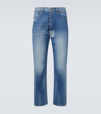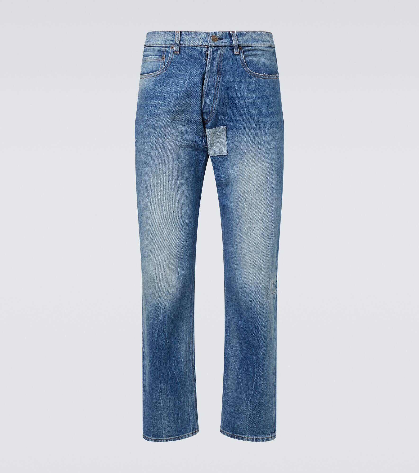 Maison Margiela continues to champion bold experimentation through minimal, modern designs. These slim jeans feature classic five-pocket styling and a contrasting denim patch. Product Details - Material: 100% cotton - Care instructions: machine wash at 30 degrees - Made in Italy - Designer color name: Vintage Medium Blue - Item color: blue - Lining: 65% polyester, 35% cotton - Closure: zipper fly, button fastening - Pockets: five pockets - Belt loops - Item number: P01080999 Size & Fit - Fits large to size - we recommend trying one size smaller - Non-stretchy fabric - Slim-leg - Mid-rise - Height of model is 188cm-74" and wears a size 32